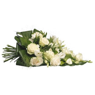 Geef blijk van je innige deelneming met deze lieflijke en zorgvuldig geselecteerde combinatie van hoogwaardige witte rozen en sierblad uit het seizoen. Topkwaliteit rouwboeket met veel waar voor je geld.